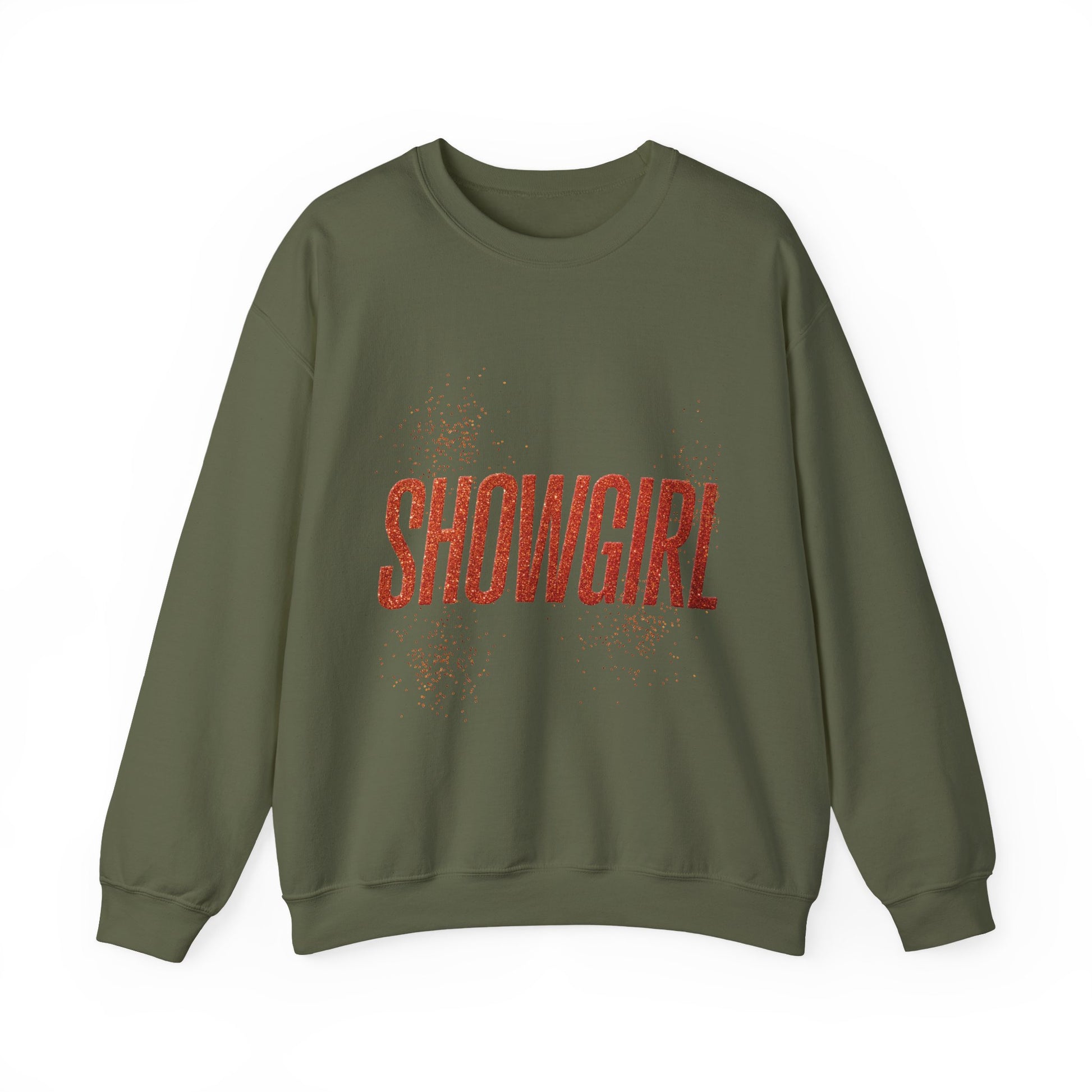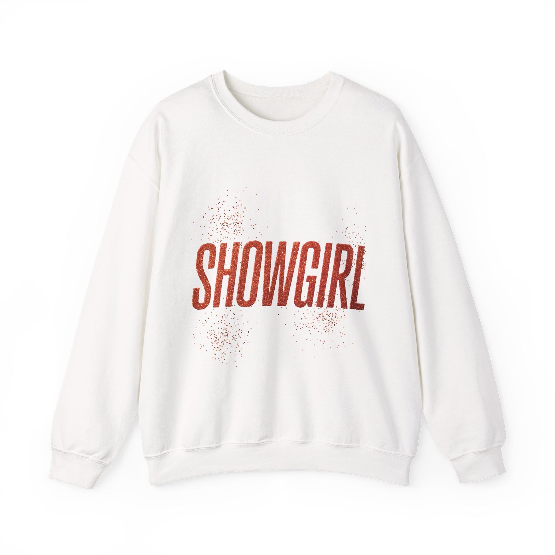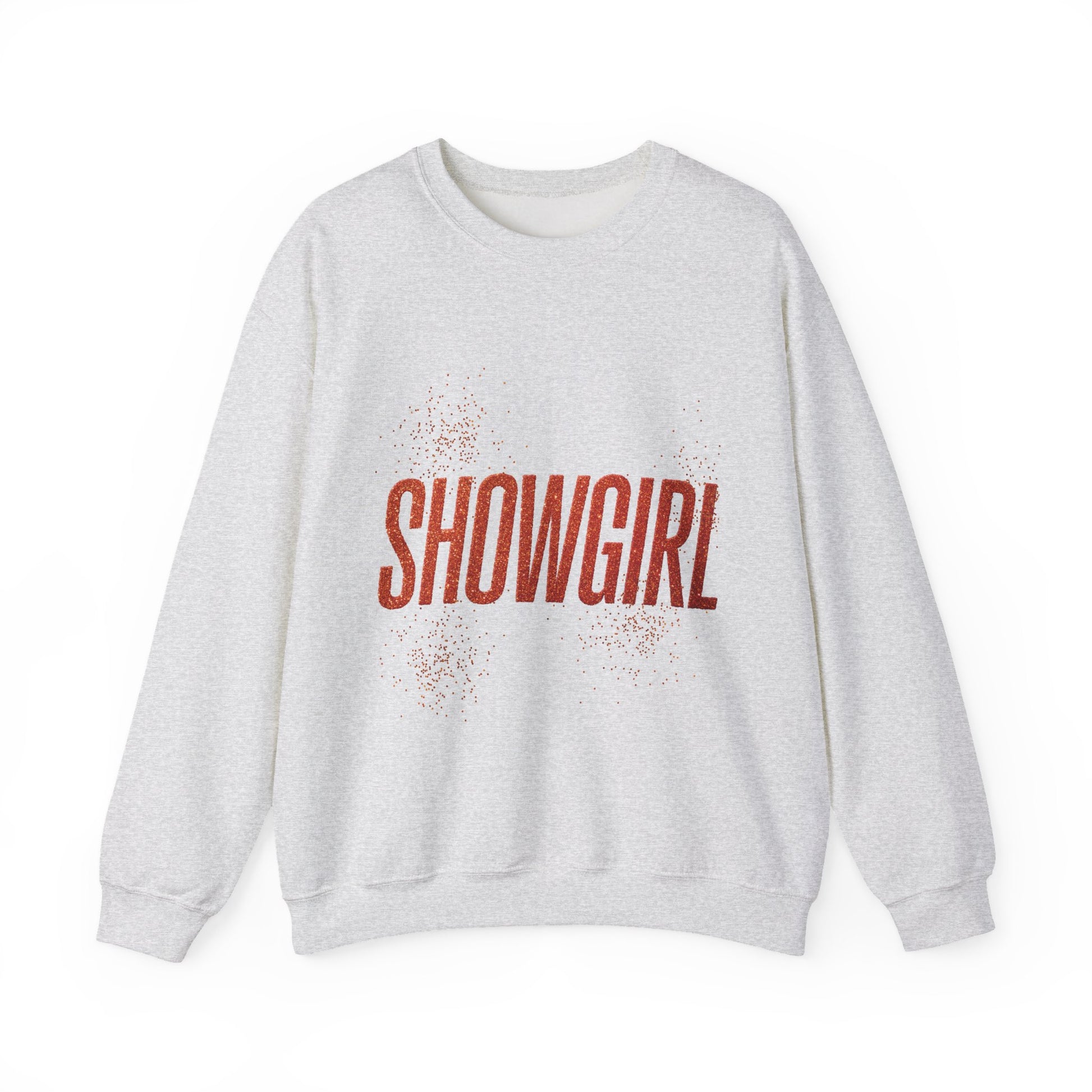 A cozy and stylish unisex crewneck sweatshirt with glitter accents and the word SHOWGIRL in all capital letters. Perfect for those who love to stand out and shine, this sweatshirt is ideal for performers, dancers, and anyone who wants to add a touch of sparkle to their wardrobe. Great for parties, performances, and special events.